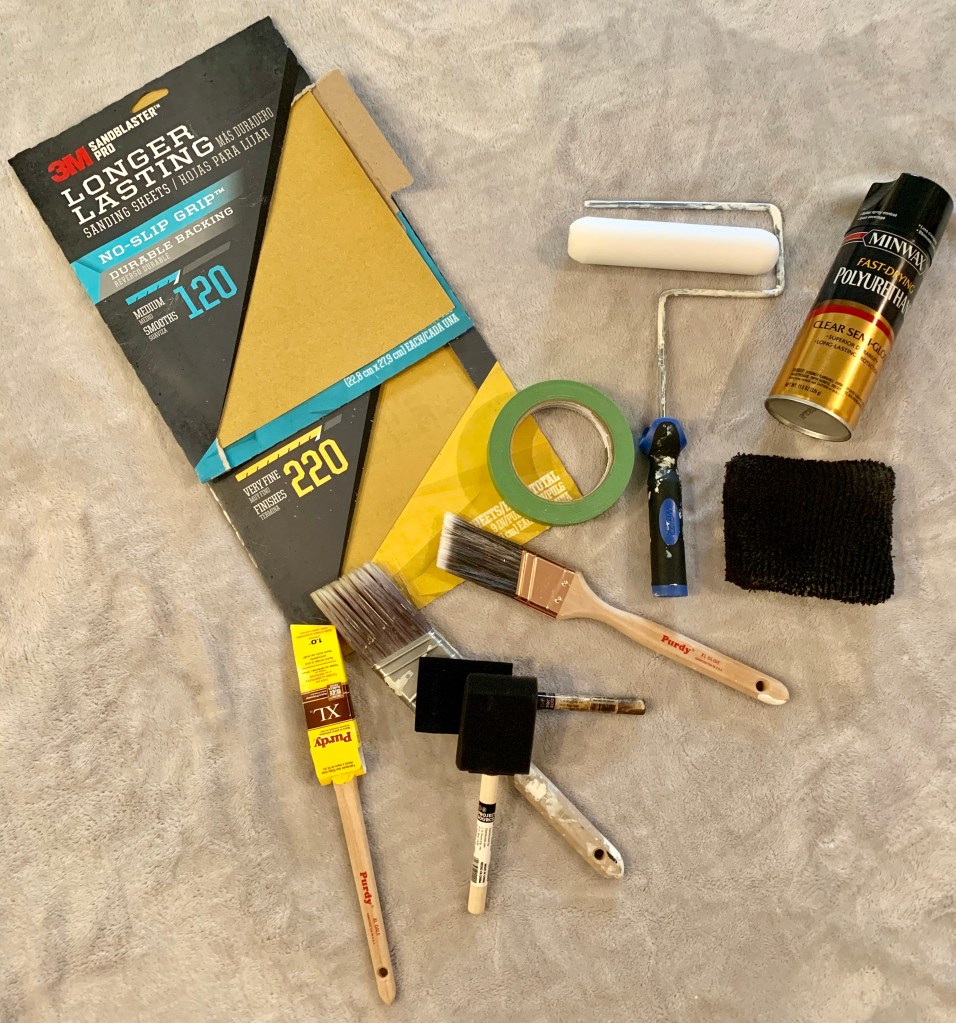 First was to buy all supplies! I am very fortunate to live within walking distance to Lowes and have a prime membership as 98% of the supplies where from these two places. I had already decided to match the white to the new painted baseboards and wanted me stain to match my mirror Redo so thankfully the colors were all picked out. I should warn you I am a huge fan of Valspar painting products! They are worth the extra money!