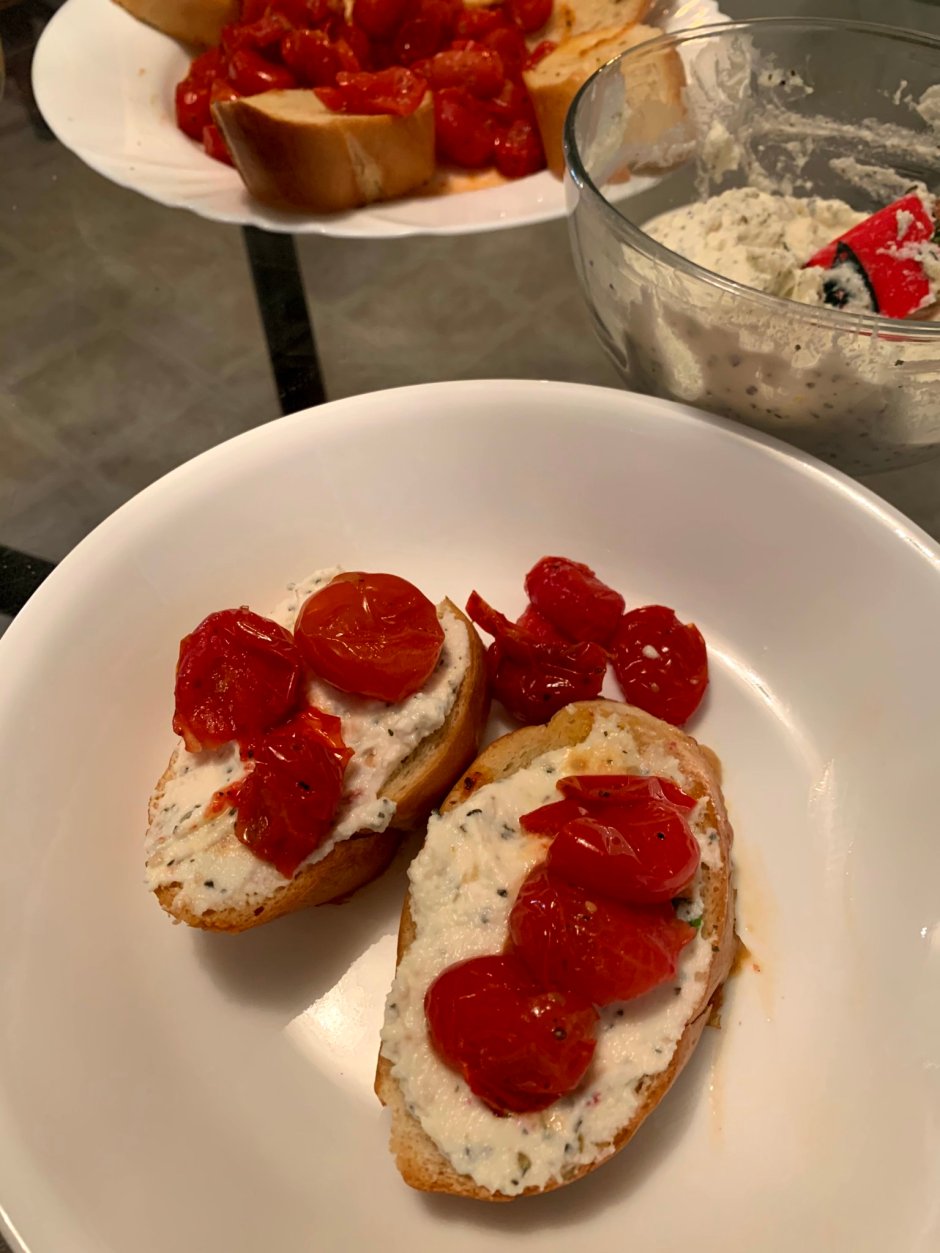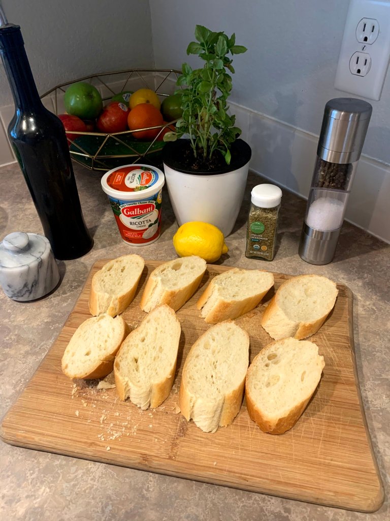 Lemony Herbed Ricotta and Roasted Tomato Bruschetta